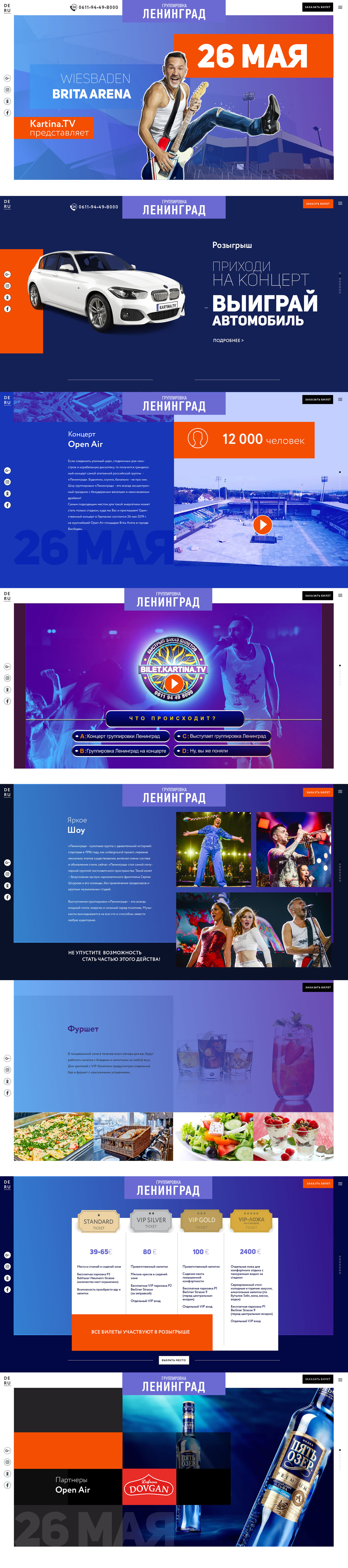 Entwicklung eines ganzheitlichen visuellen Konzepts für das Leningrad Open-Air-Konzert in der Brita Arena. Alle Kommunikationskanäle — Print, Digital, Außenwerbung — wurden zu einem konsistenten Erscheinungsbild verbunden.